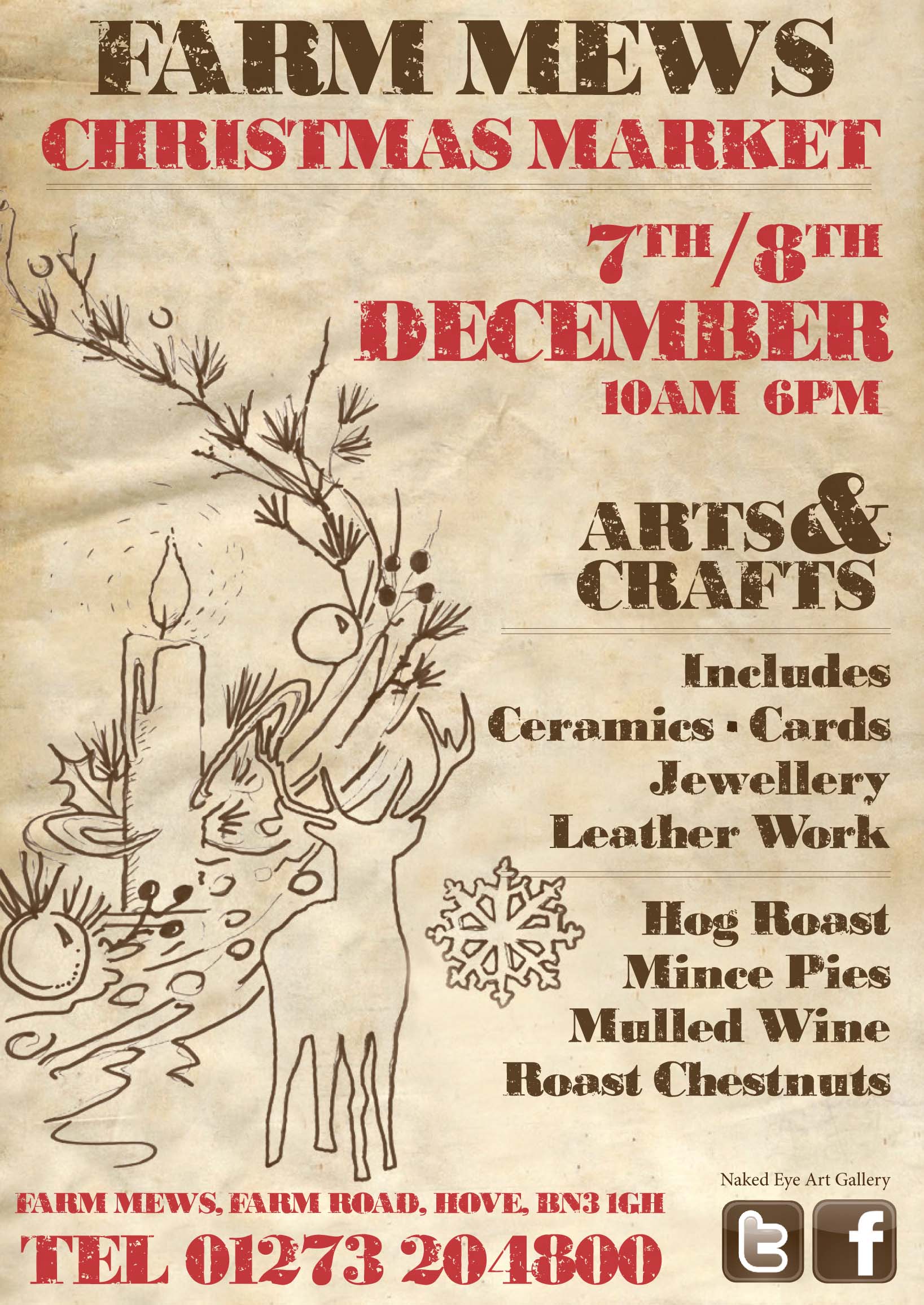 Farm Mews is kicking off the festive season with it’s second Christmas Market on the 7th and 8th December 2013. The Mews is based on Farm Road, Hove, BN3 1GH and has become known to be ‘the most charming, quintessential Mews in Hove’, and it really is the perfect place to get those original, inexpensive Christmas gifts for your friends and family. The Market includes a captivating blend of fabulous gifts and unique, hand crafted items and decorations by local artists, and with it’s friendly, relaxed atmosphere you can sit back in style and enjoy the hog roast and a glass of mulled wine by the fire.