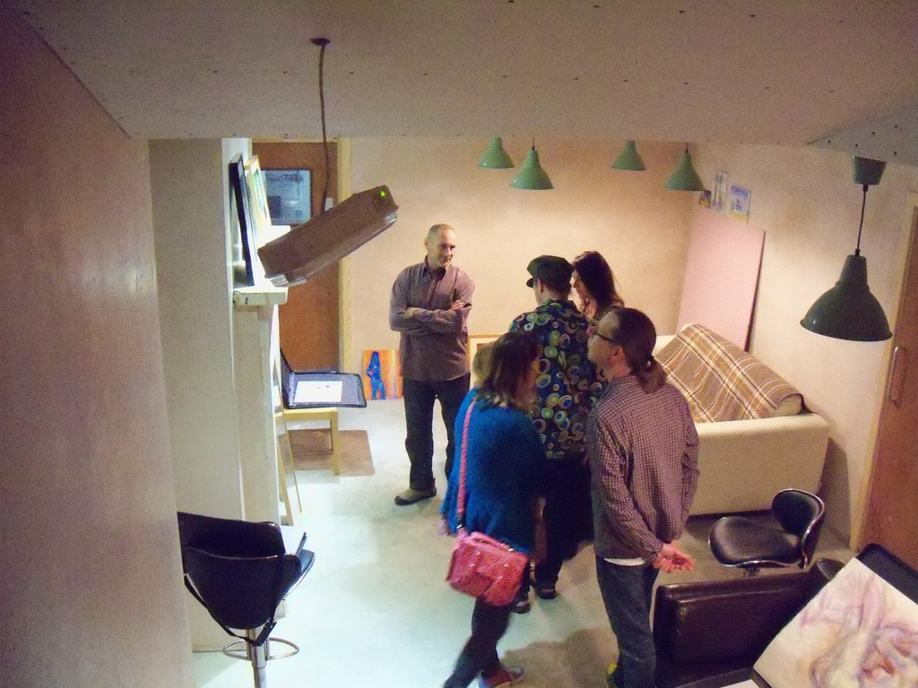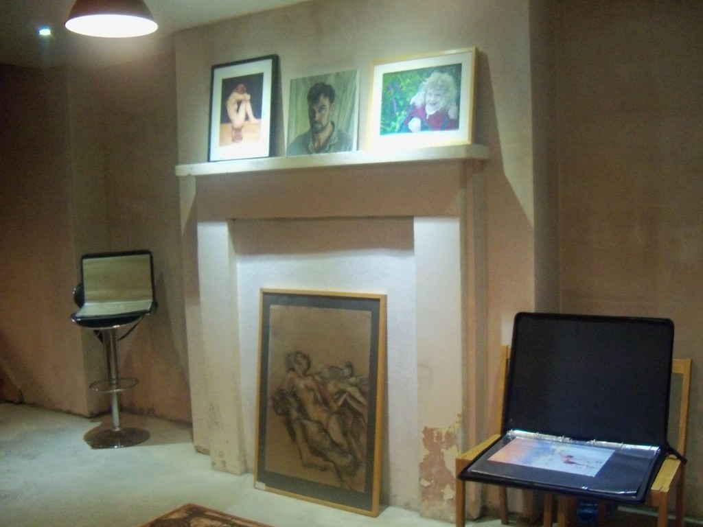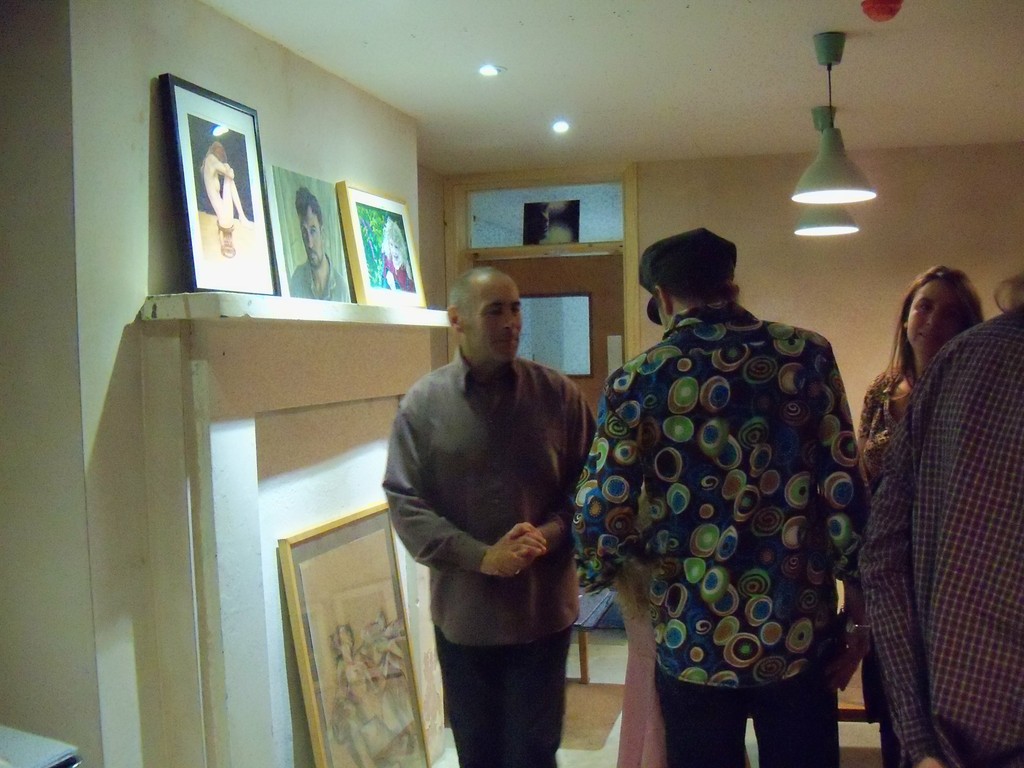 Surprisingly we found out that just for the evening the cafe’s basement turned into one more showroom where we could see Russell’s former artworks and it becomes yet another journey for us – into his artistic evolution. Oil paintings and pastel drawings, beautifully painted in a more academic style, focus on a human figure as well. Delicate figures and nudes and strongly expressive self-portraits are aimed to represent our human essence as such through a pose, bodily and facial expressions. Here we are thrown into more contemplative atmosphere, enhanced by the basement’s interior – its colour and light.