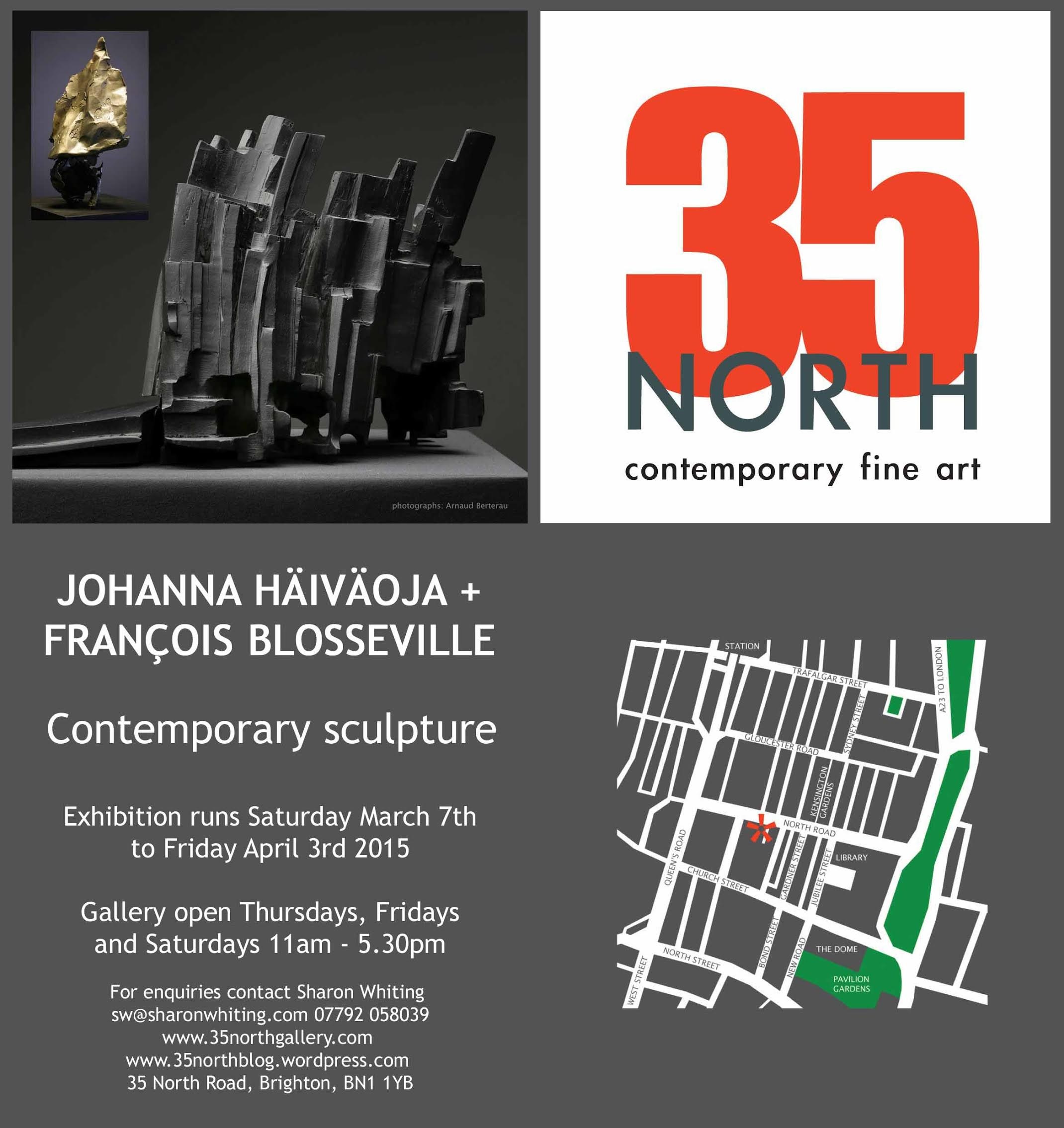Now based in Dieppe, Johanna and François met at the Beaux Arts in Paris where they were both studying. Finnish born Johanna works in paper, bronze, fibreglass and glass. She exhibits regularly in both France and her native Finland and has previously been a guest artist here in Brighton during the Festival. François Blosseville was born in Normandy and his love for that rugged coastline is very evident in his work. Francois sculpts in alabaster, wood, resin and bronze and exhibits in a selection of galleries in France. He too has been a guest artist here in Brighton and it is with great pleasure that we welcome both Francois and Johanna to 35 North.