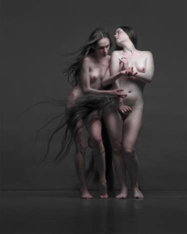 How sublime to find myself discussing whether the photography on show is more reminiscent of the painting of Caravaggio, or of the pre-Raphaelite school. Justyna is right of course, the creation of form in her new show of photography, owes much to the way she handles light and shadow, recalling work of the Italian master of chiaroscuro technique – Caravaggio. But the detached wonder in the expression and gesture of the models in the group called Ghost Dance is surely reminiscent of the pre-Raphaelite School?