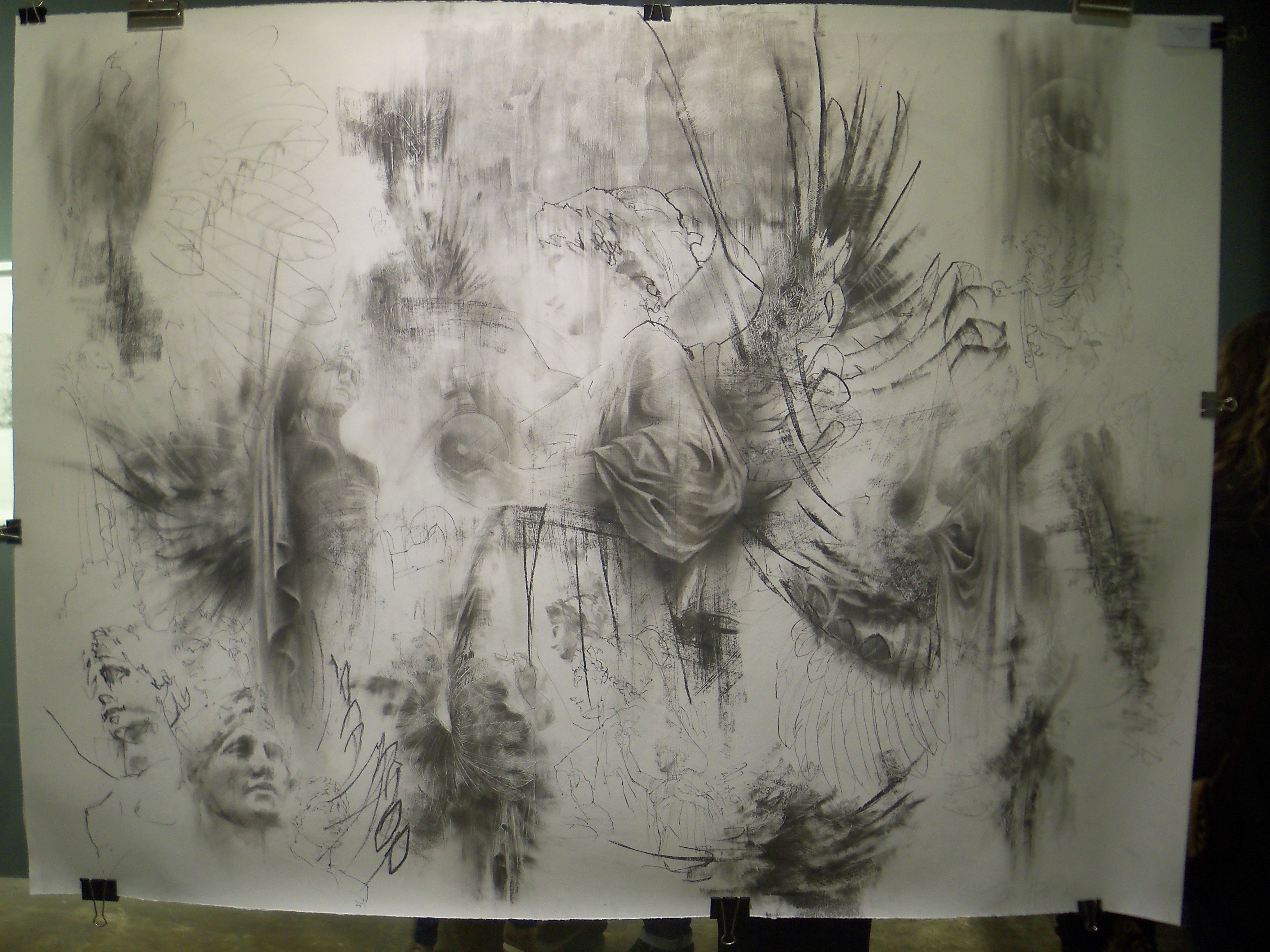 ‘Unseen’ and ‘Mouth to Mouth’ (both graphite and pastel on paper)