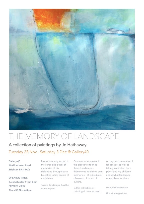 Each painting is different and has its own story. I usually start with a piece of writing – from a novel or poem or a quote from a newspaper. This guides me as to where to go and sketch and study. Then I think my way through, illustrating those thoughts with an image, be it abstract or more realistic.
