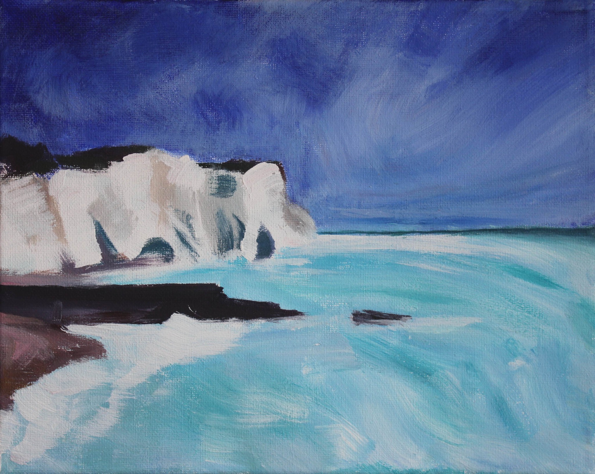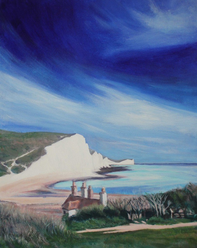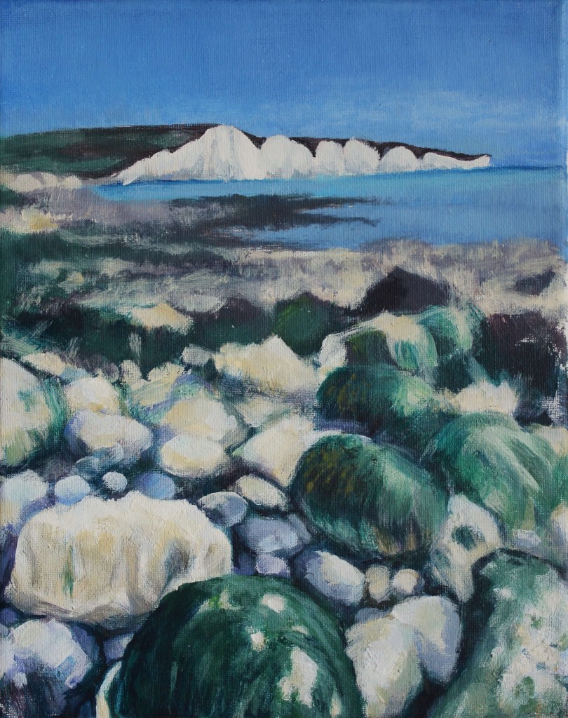 Russell Honeyman’s vibrant seascape paintings of the chalk cliffs near Seven Sisters on show at IO gallery in Brighton’s North Laine until Easter Monday.