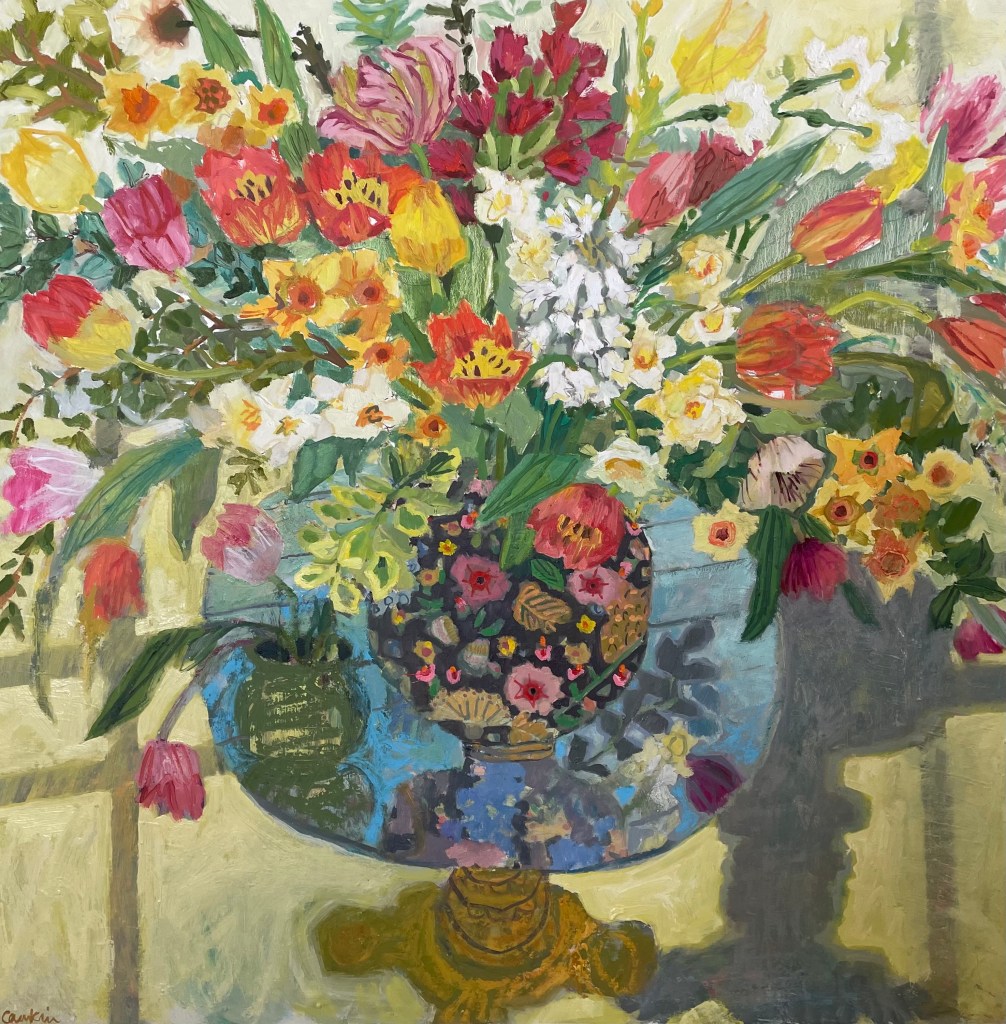 Spring Flowers on the Yellow Table, Oil on board, 110 x 110 cm, £4600